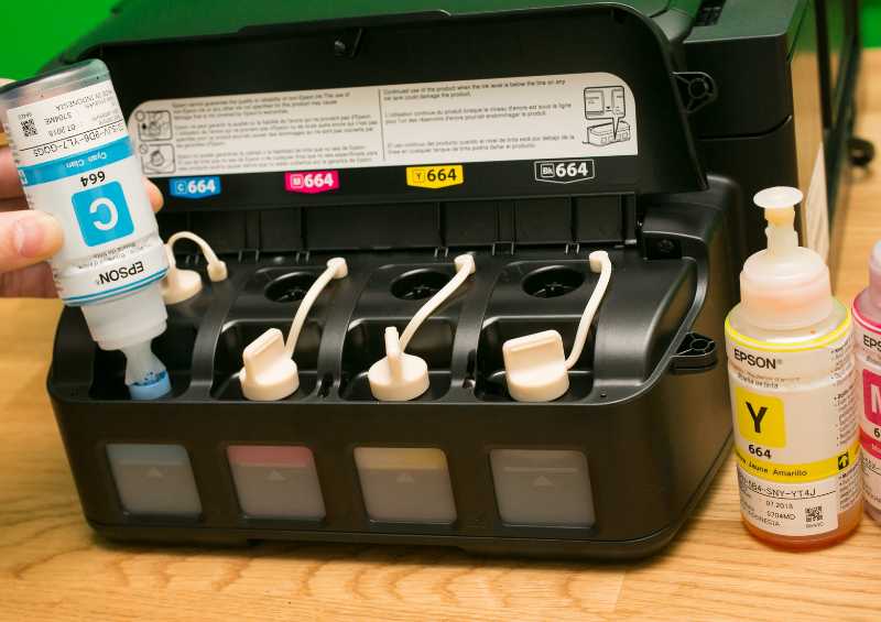 Jedna od glavnih prednosti Epson EcoTank sustava je način punjenja tinte koji je osmišljen kako bi bio što jednostavniji i čišći. Boce s tintom dolaze s posebnim nastavcima koji sprječavaju prolijevanje i omogućuju precizno ulijevanje u spremnike. Ovakav sustav smanjuje nered i olakšava održavanje uređaja.